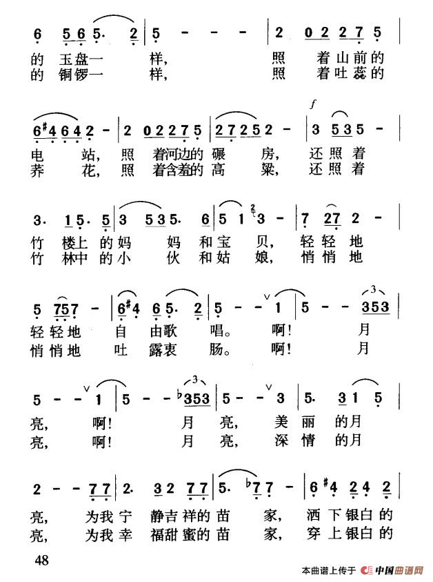 关于《苗山顶上的月亮》曲谱的评论