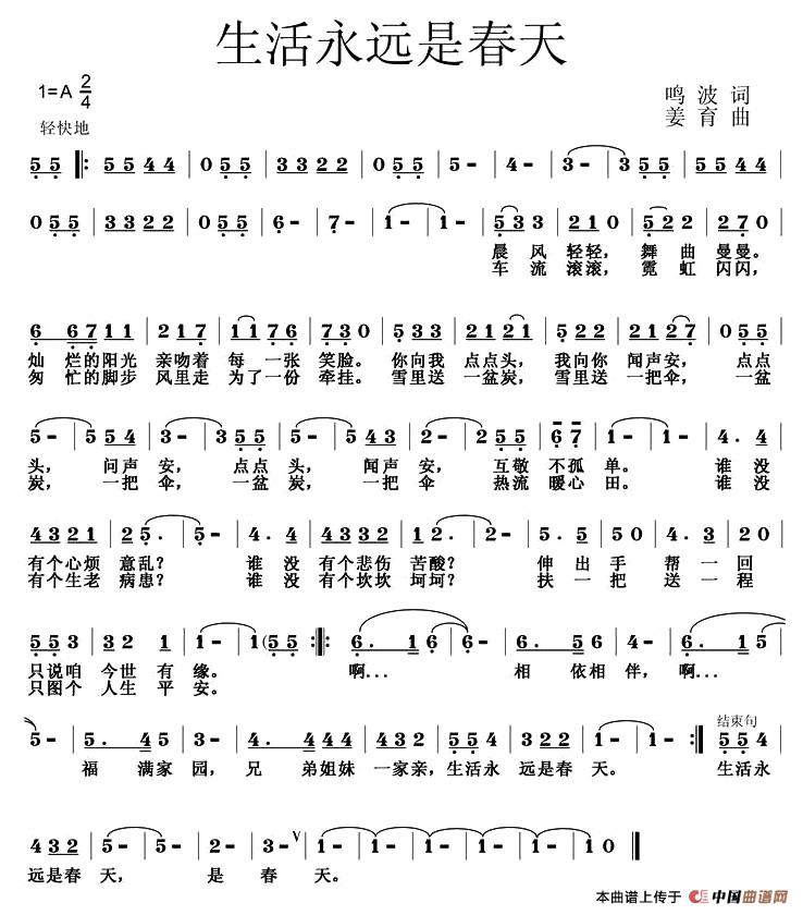 关于《生活永远是春天》曲谱的评论
