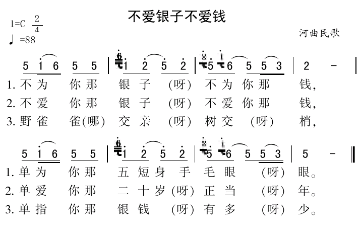 关于《不爱银子不爱钱》曲谱的评论