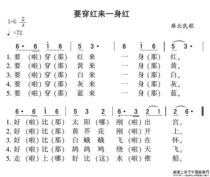 关于《要穿红来一身红》曲谱的评论