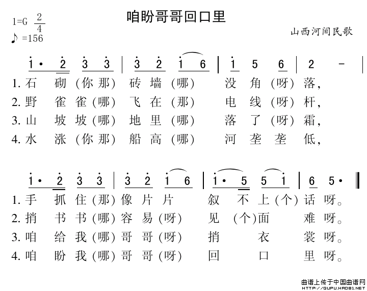 关于《咱盼哥哥回口里》曲谱的评论
