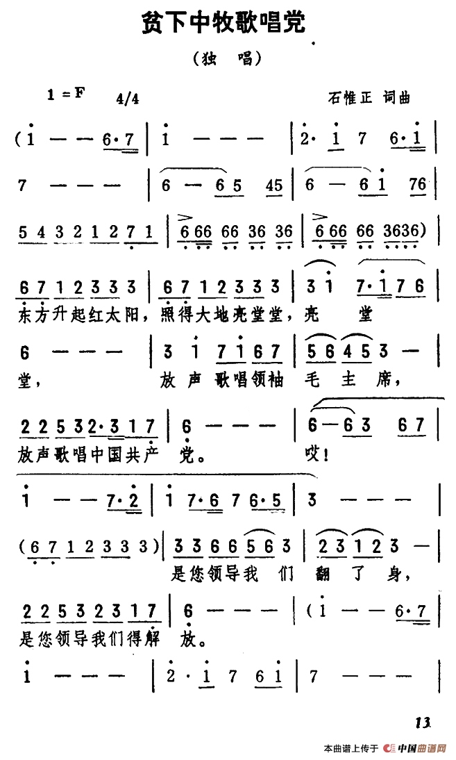 作词:石惟正 作曲:石惟正 来源:《中国曲谱网》 上传:车里子