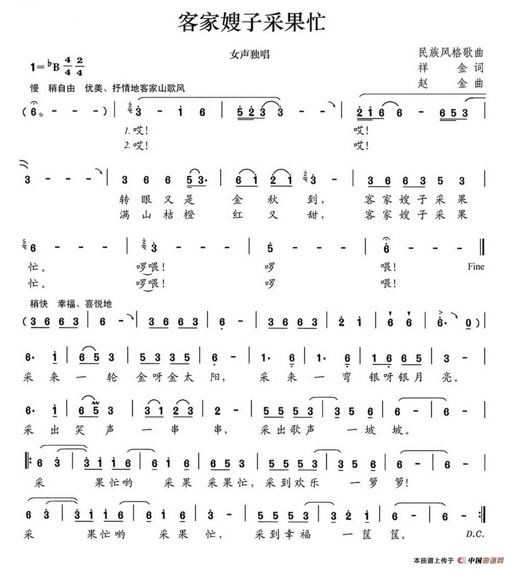 关于《客家嫂子采果忙》曲谱的评论
