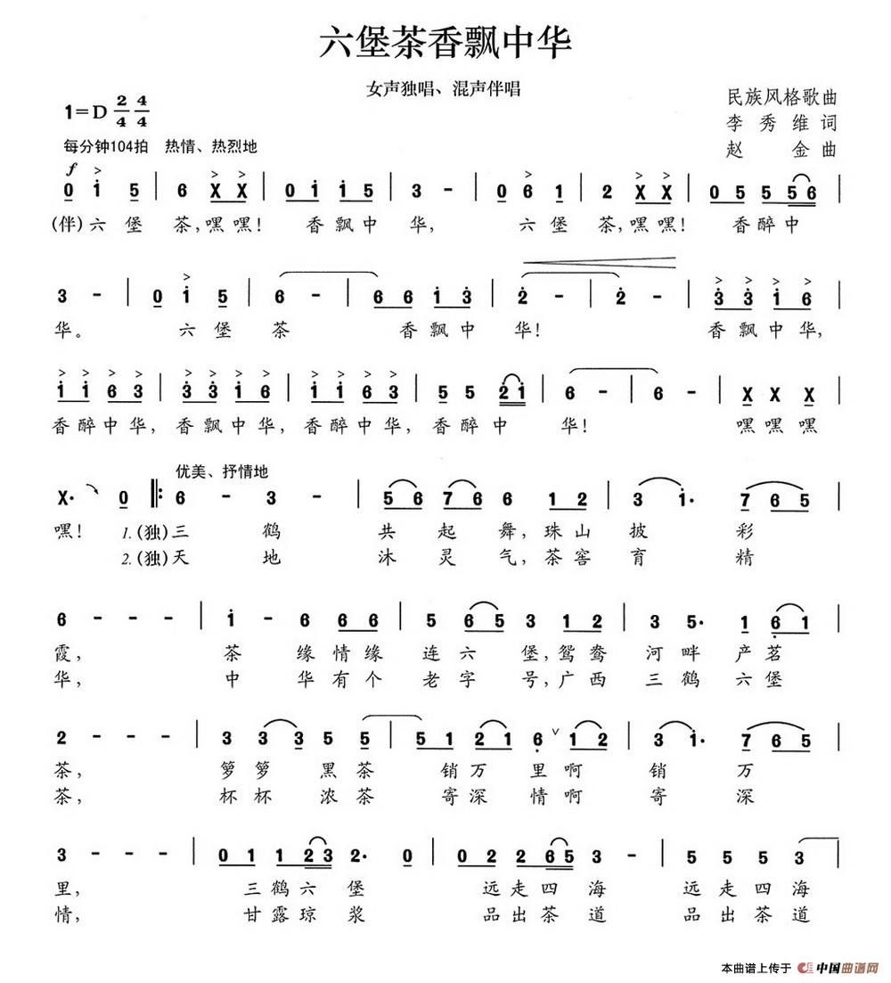 关于《六堡茶香飘中华》曲谱的评论