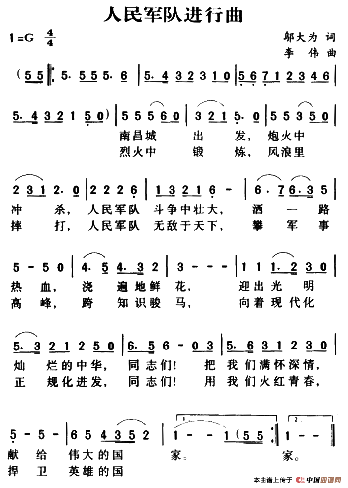 选自赵小毅编著的《百唱不厌军歌金曲》