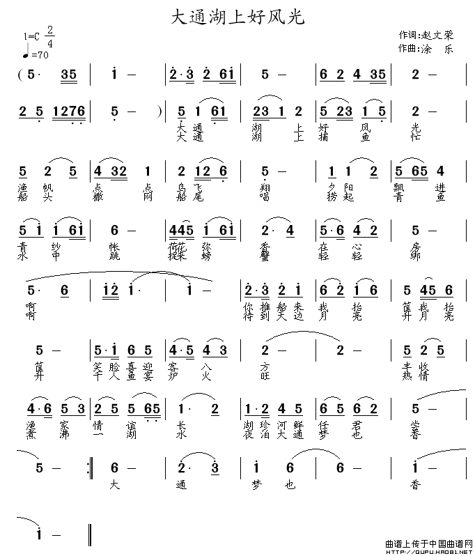 关于《大通湖上好风光》曲谱的评论