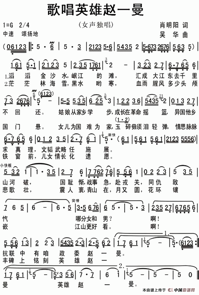 《歌唱英雄赵一曼-唱响四川歌曲征集作品》文本歌词