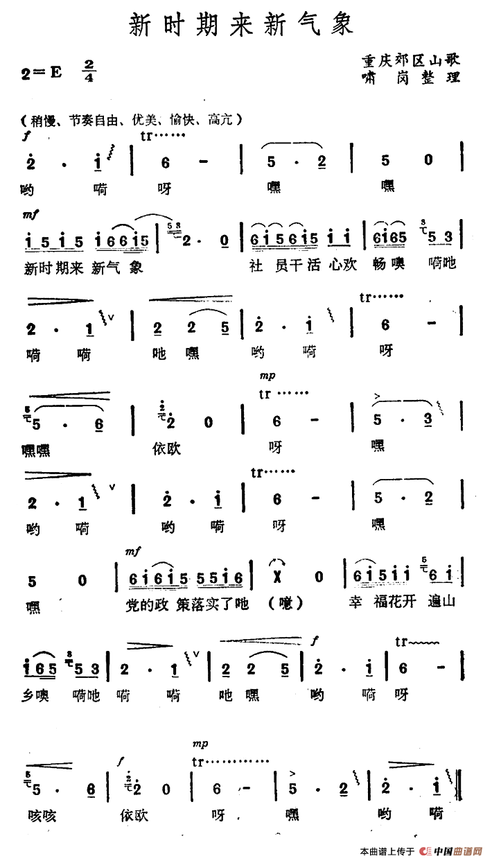 作曲:重庆山歌、啸岗整理 来源:《中国曲谱网》 上传:秋叶起舞