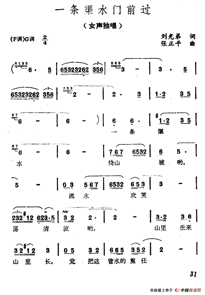 关于《一条渠水门前过》曲谱的评论