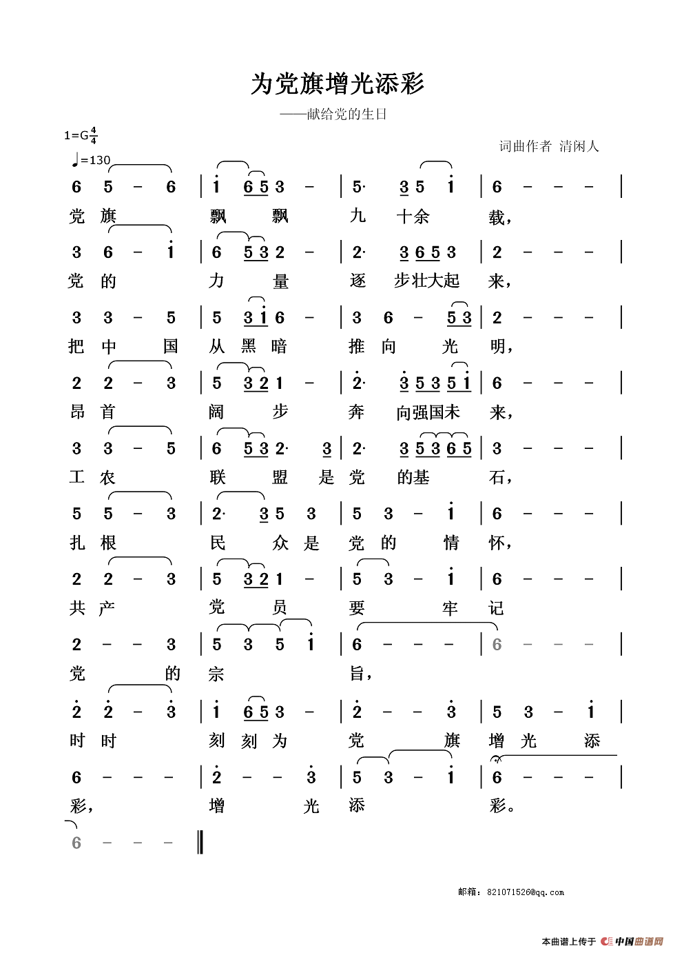 关于《为党旗增光添彩》曲谱的评论