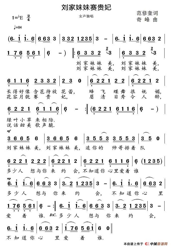 关于《刘家妹妹赛贵妃》曲谱的评论