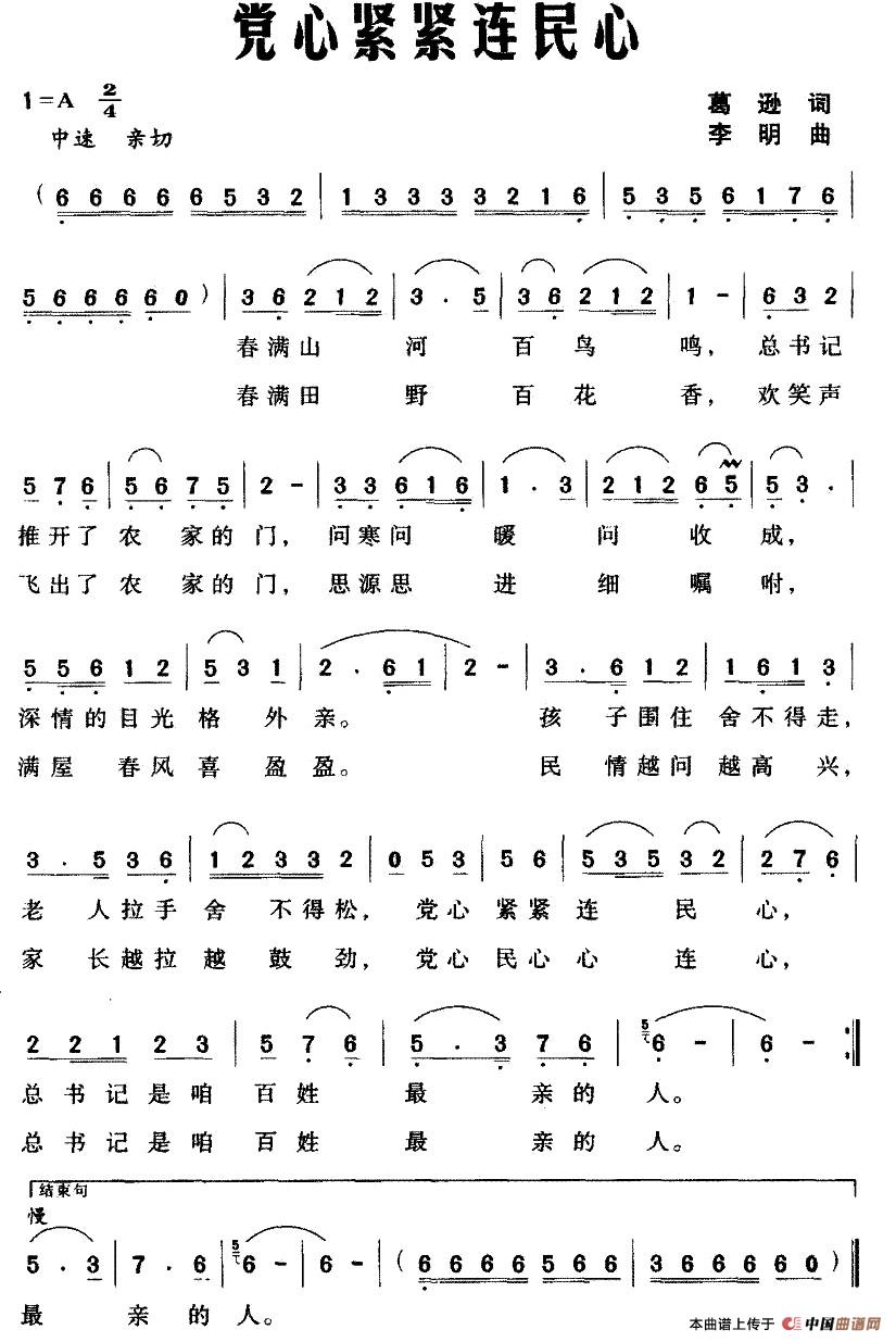 关于《党心紧紧连民心》曲谱的评论