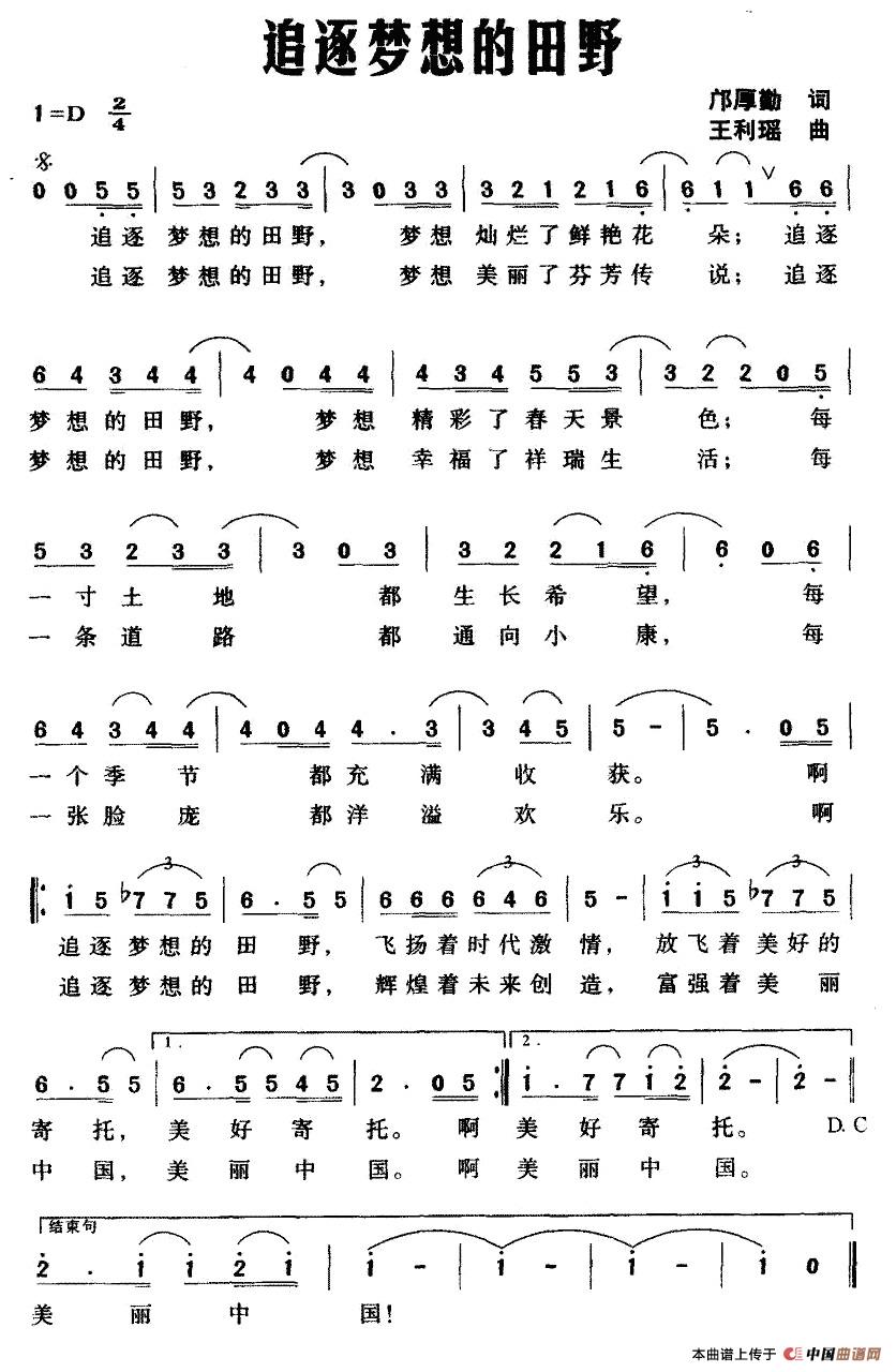 关于《追逐梦想的田野》曲谱的评论