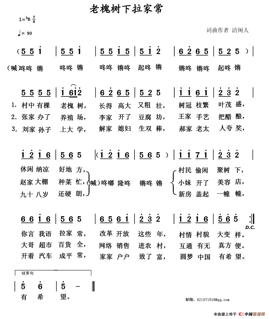 村民偷闲聚树下,你言我语拉家常,改革开放这些年,村情村貌大变样。