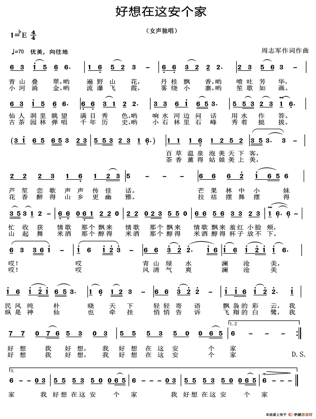 致谢:《中国曲谱网》衷心感谢演唱老师馈赠原版歌谱!
