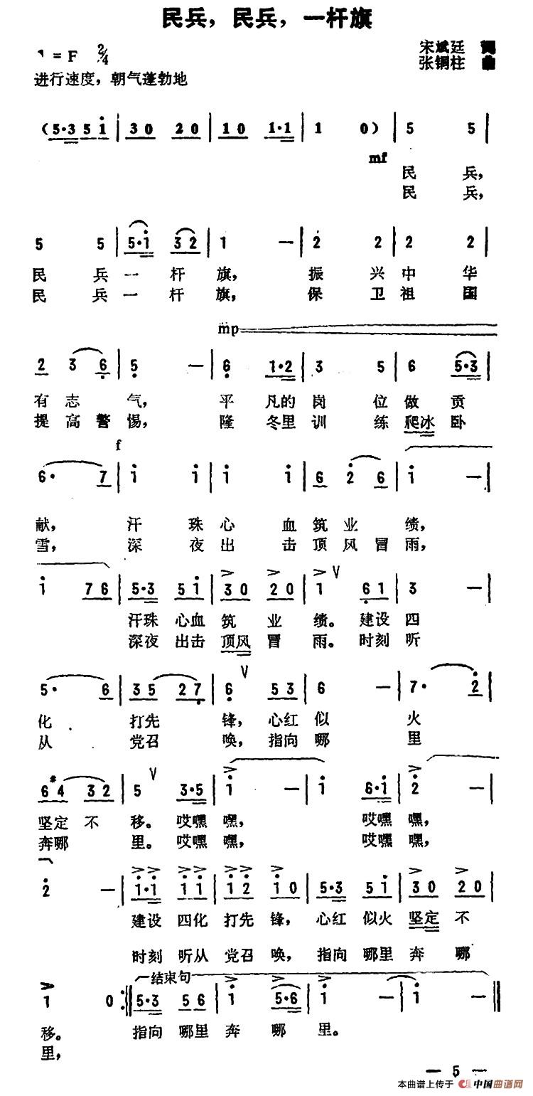 关于《民兵,民兵,一杆旗》曲谱的评论