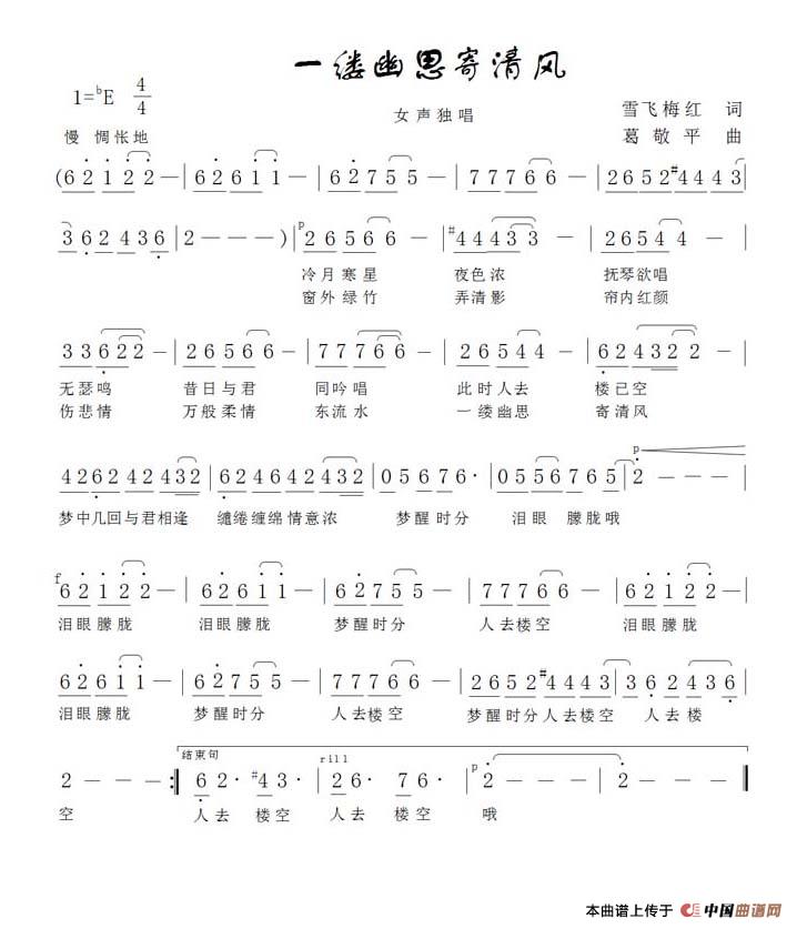 致谢:《中国曲谱网》衷心感谢作者老师馈赠原版歌谱!
