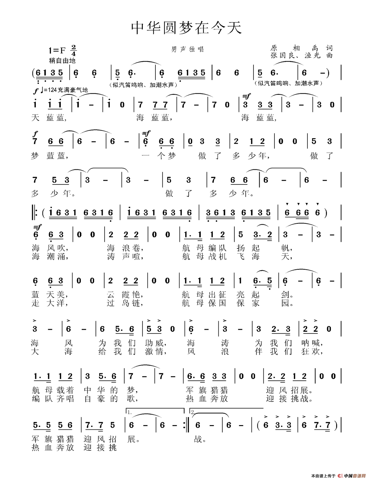 关于《中华圆梦在今天》曲谱的评论