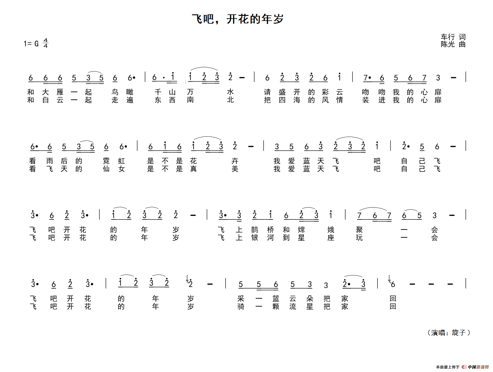 致谢:《中国曲谱网》衷心感谢作者老师馈赠原版歌谱!