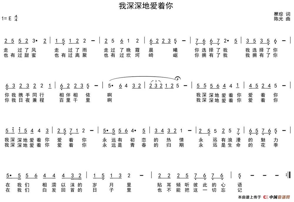 关于《我深深地爱着你》曲谱的评论