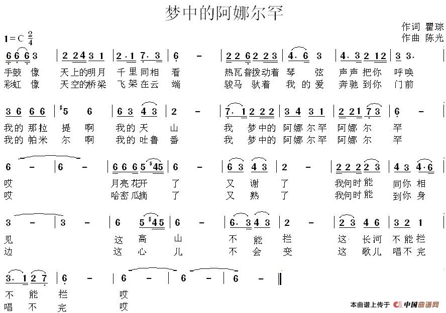 致谢:《中国曲谱网》衷心感谢作者老师馈赠原版歌谱!