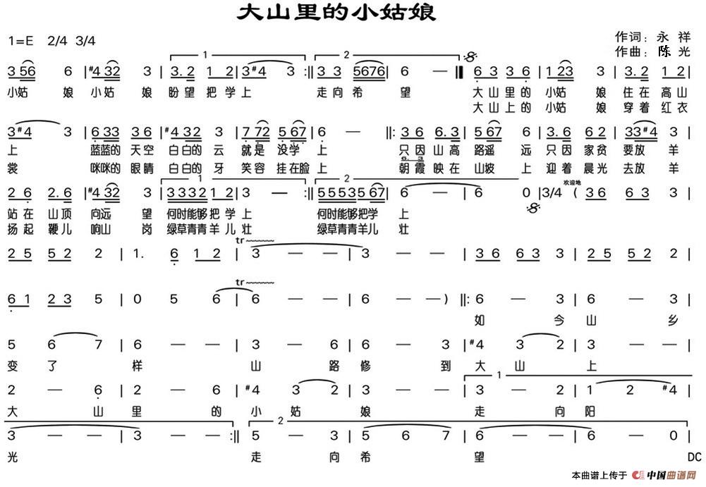 致谢:《中国曲谱网》衷心感谢作者老师馈赠原版歌谱!