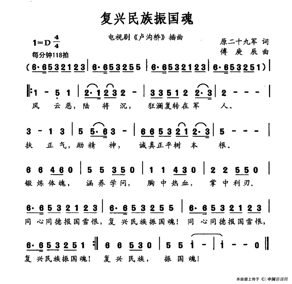 关于《复兴民族振国魂》曲谱的评论
