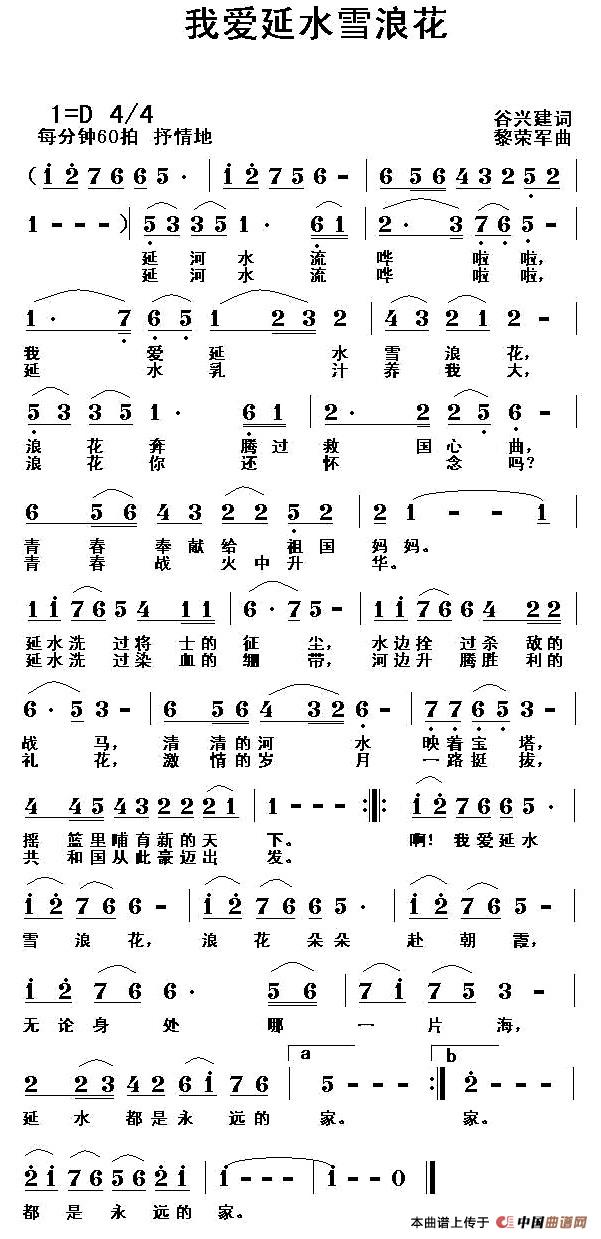 关于《我爱延水雪浪花》曲谱的评论