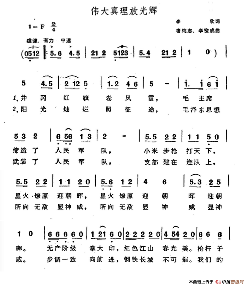 关于《伟大理想放光辉》曲谱的评论