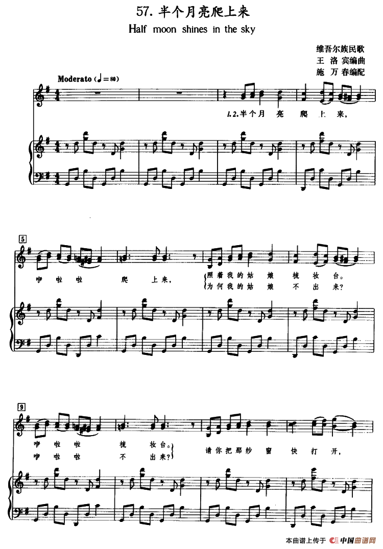 作曲:维吾尔族民歌、王洛宾编曲、施万春配伴奏 来源:《中国曲谱网》 上传:秋叶起舞