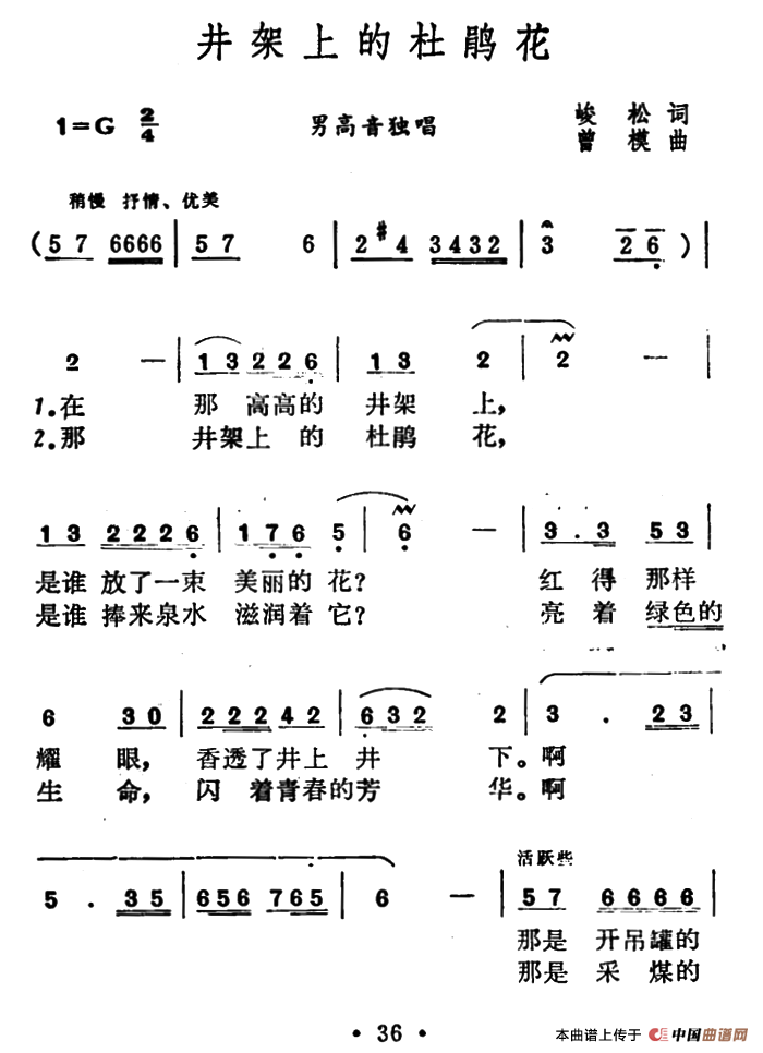 关于《井架上的杜鹃花》曲谱的评论