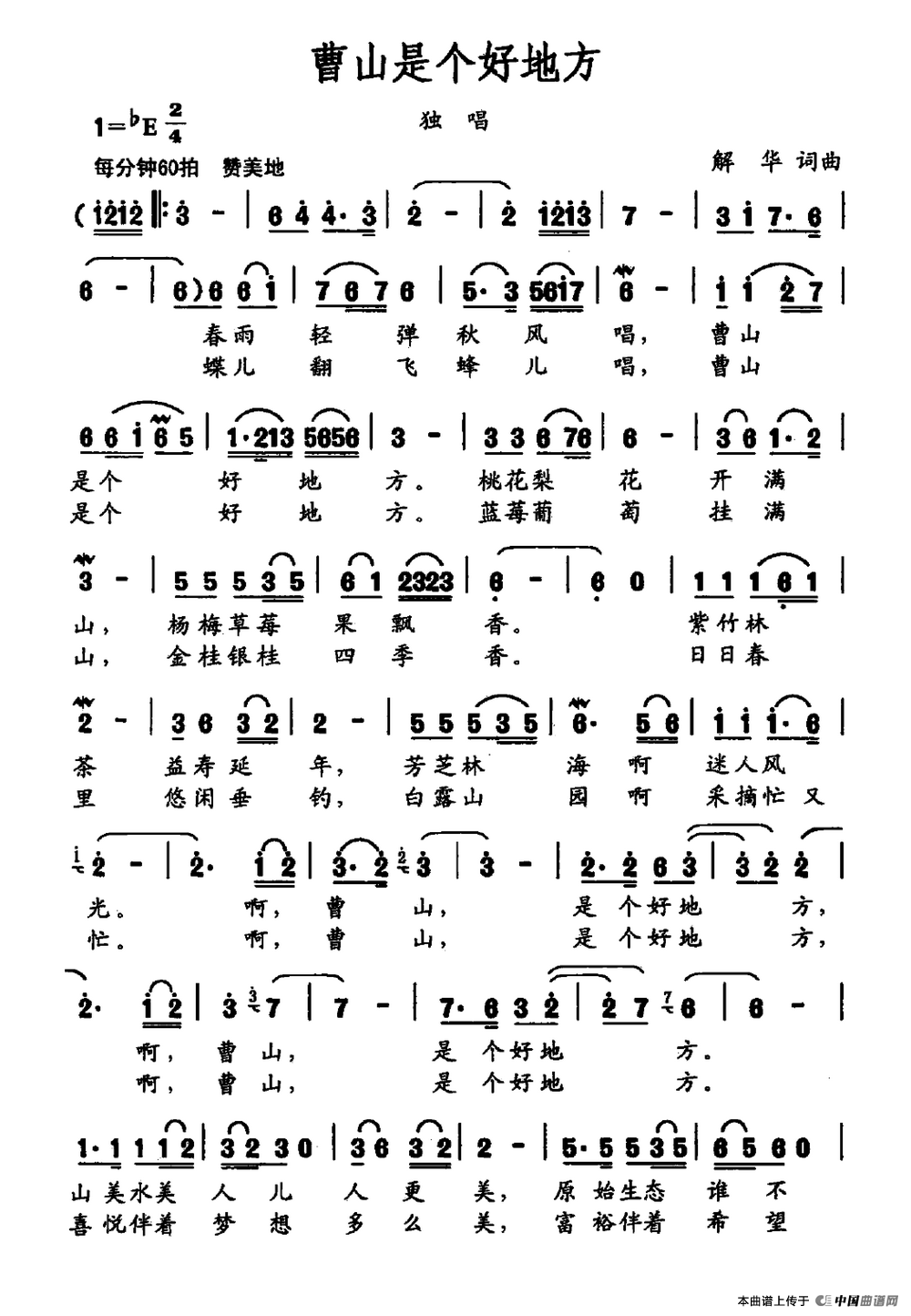 关于《曹山是个好地方》曲谱的评论