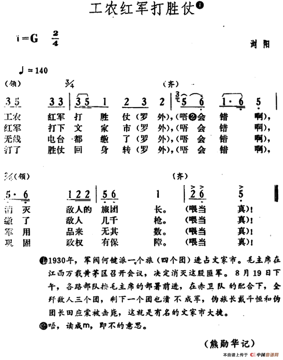 关于《工农红军打胜仗》曲谱的评论