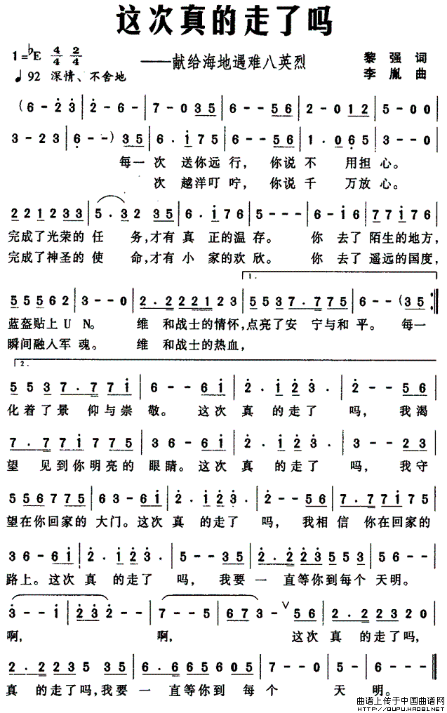 关于《这次真的走了吗——献给海地遇难八英烈》曲谱的评论