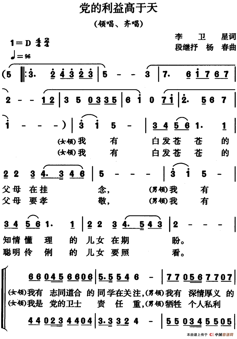 作词:李卫星 作曲:段继抒、杨春 来源:中国曲谱网 上传:热爱音乐88