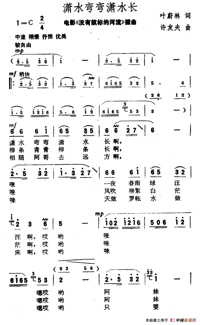 关于《潇水弯弯潇水长》曲谱的评论