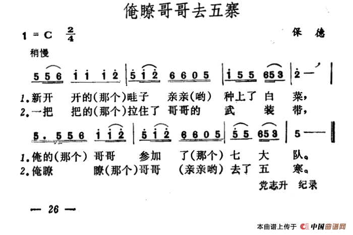 关于《俺瞭哥哥去五寨 》曲谱的评论