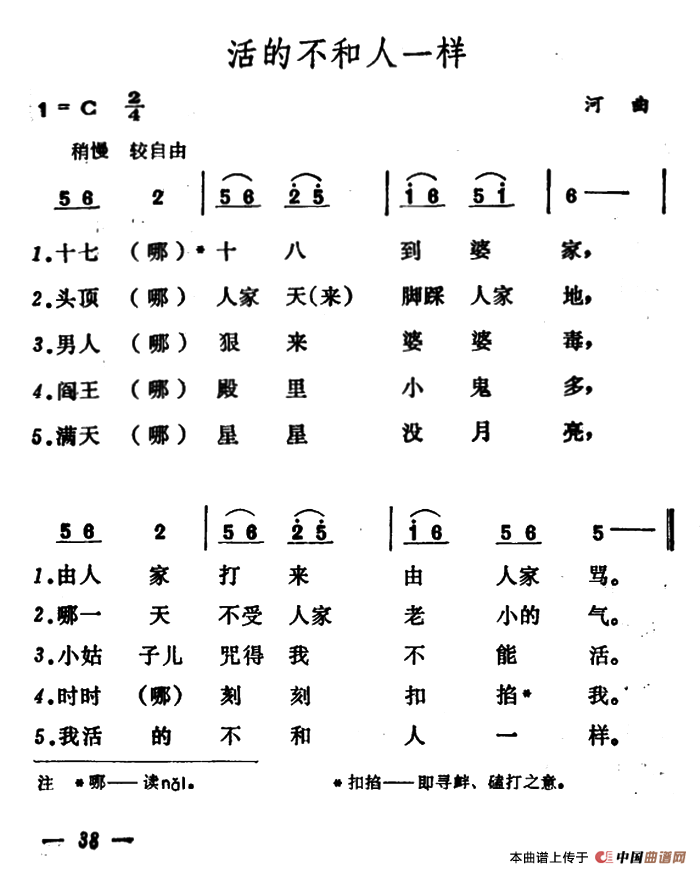 关于《活的不和人一样》曲谱的评论