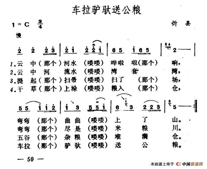 选自山西省音乐舞蹈研究所编著《山西民歌300首》