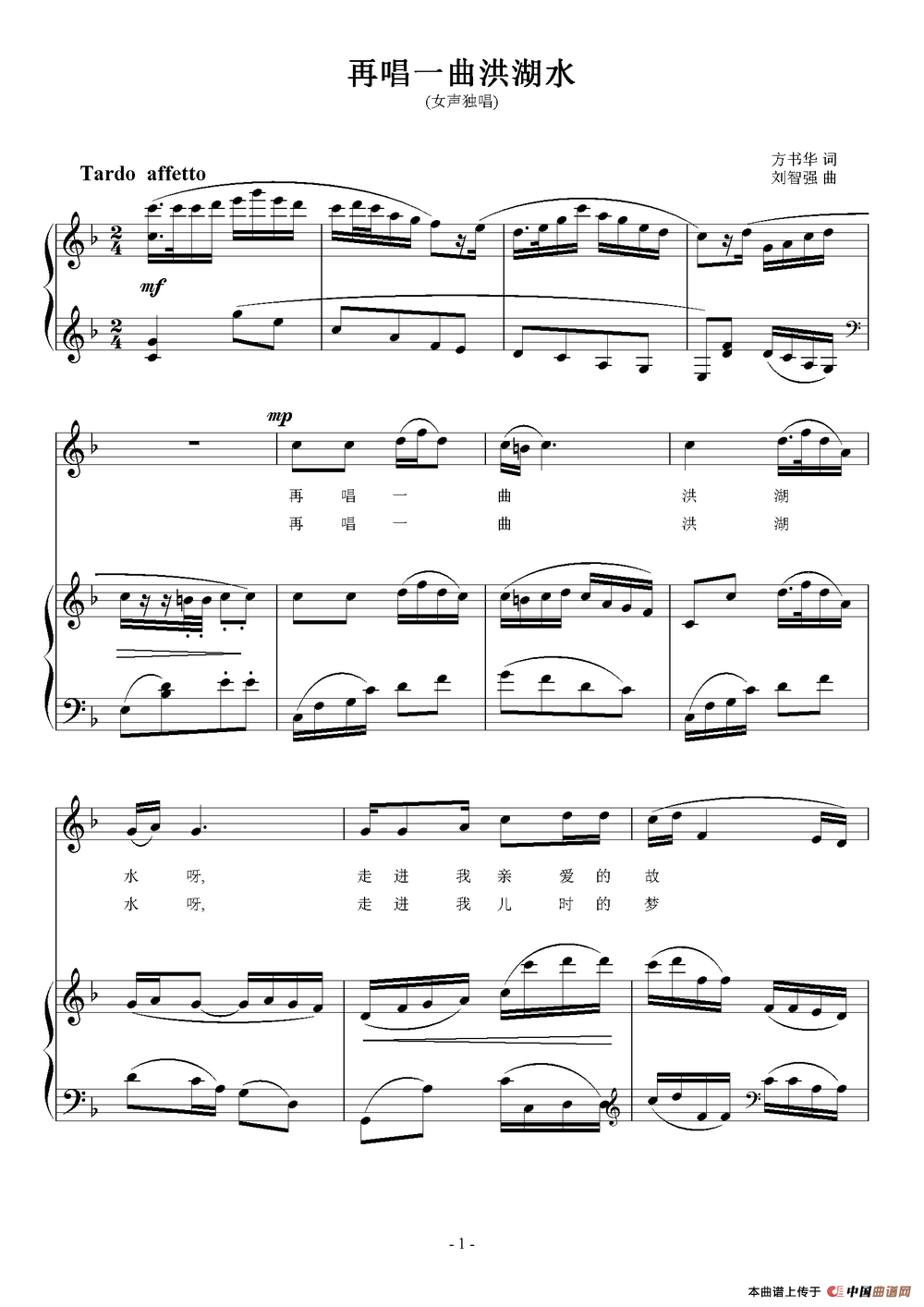 致谢:《中国曲谱网》衷心感谢作者老师馈赠原版歌谱!
