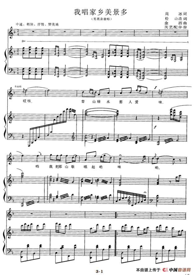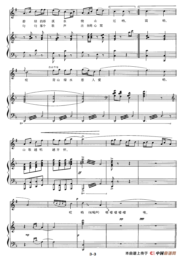 提示:在曲谱图片上单击右键,选择“图片另存为...”即可将曲谱保存到您的电脑中,打印时候可将图片插入到WORD中,调整合适大小打印即可。