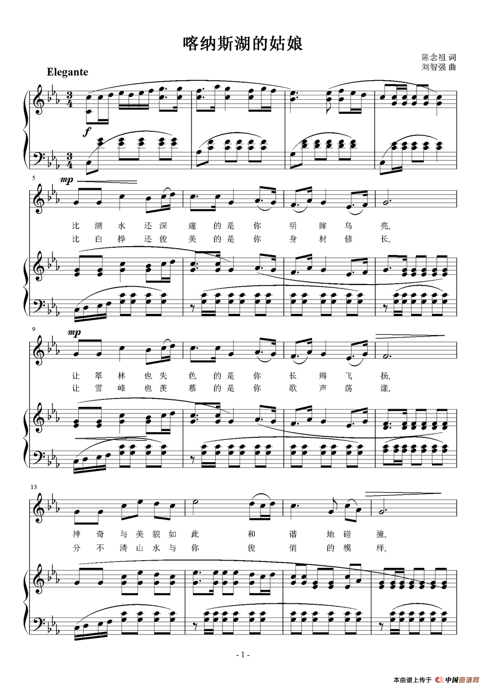 关于《喀纳斯湖的姑娘》曲谱的评论