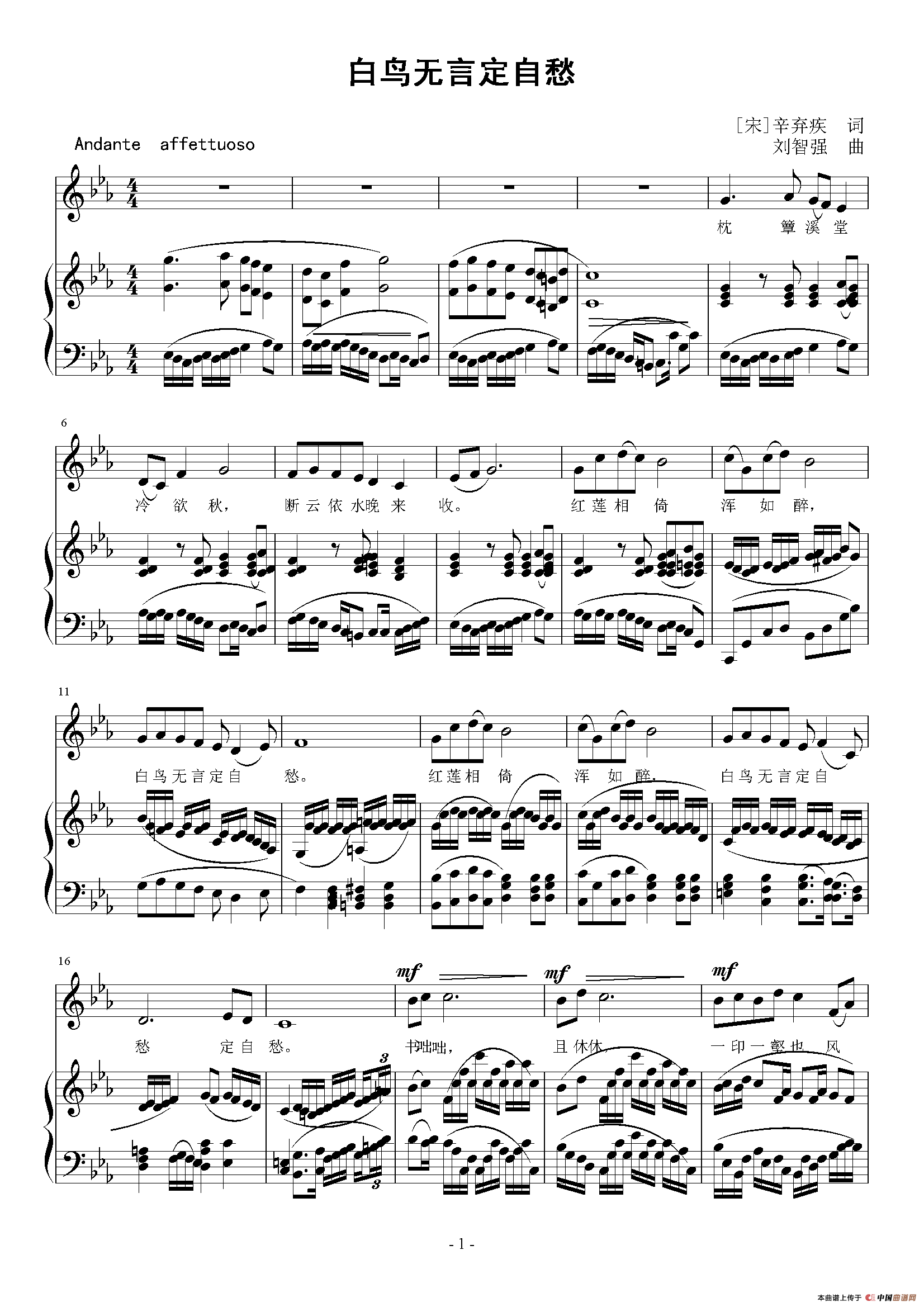 致谢:《中国曲谱网》衷心感谢作者老师馈赠原版歌谱!