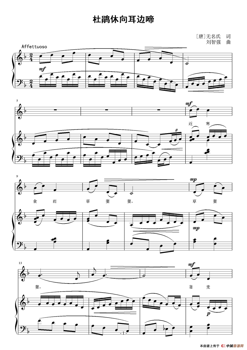 致谢:《中国曲谱网》衷心感谢作者老师馈赠原版歌谱!