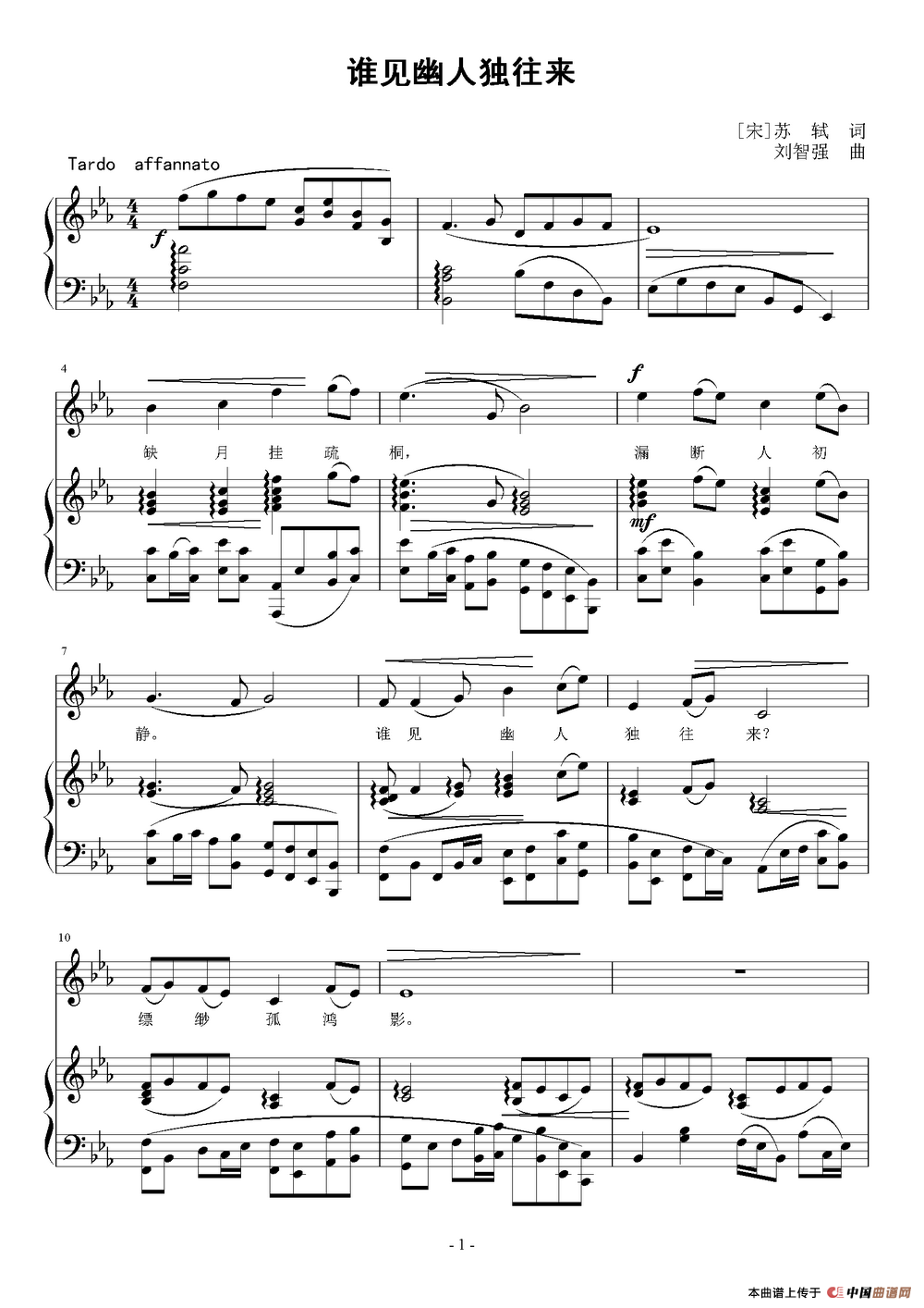 关于《谁见幽人独往来》曲谱的评论