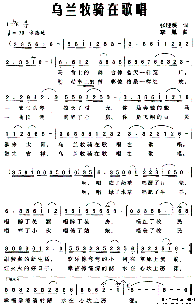 关于《乌兰牧骑在歌唱》曲谱的评论