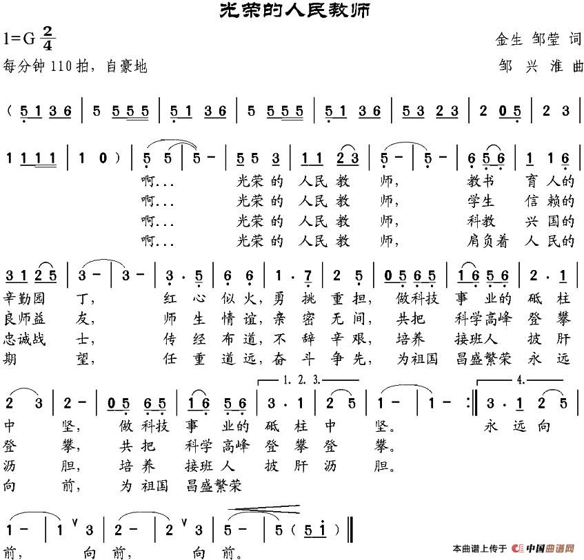 光荣的人民教师(金生、邹莹词 邹兴淮曲)