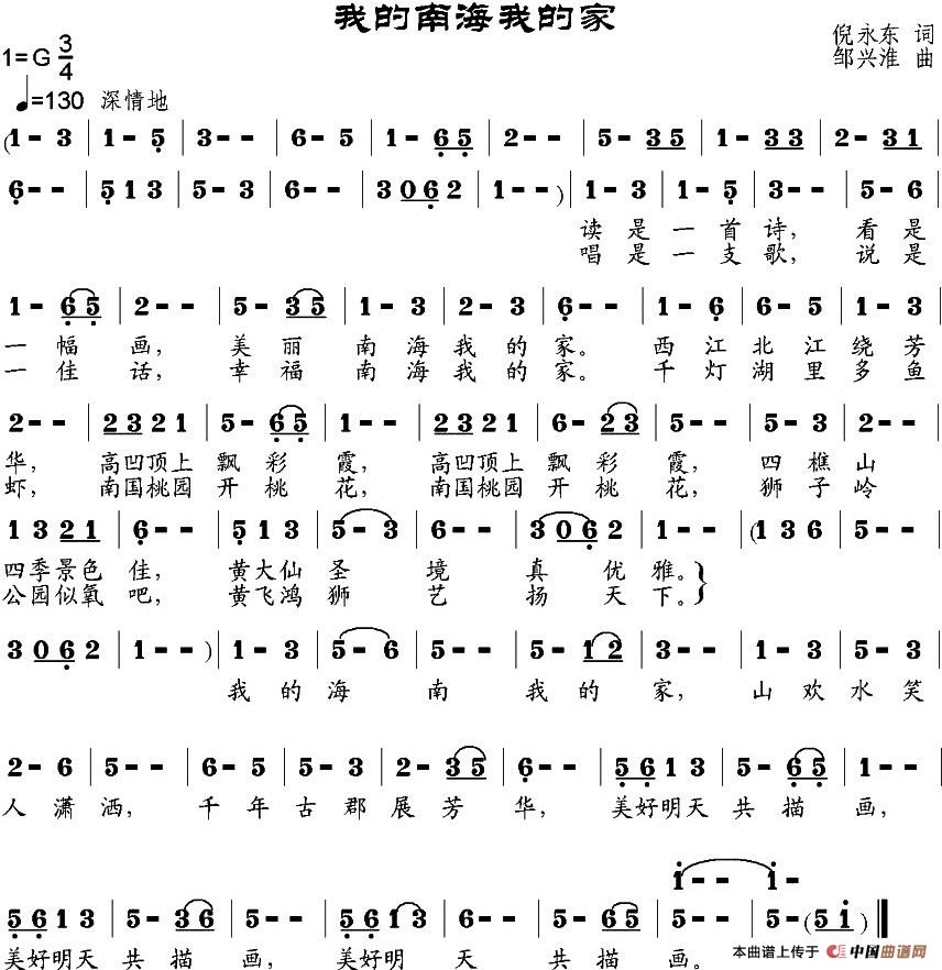 关于《我的南海我的家》曲谱的评论