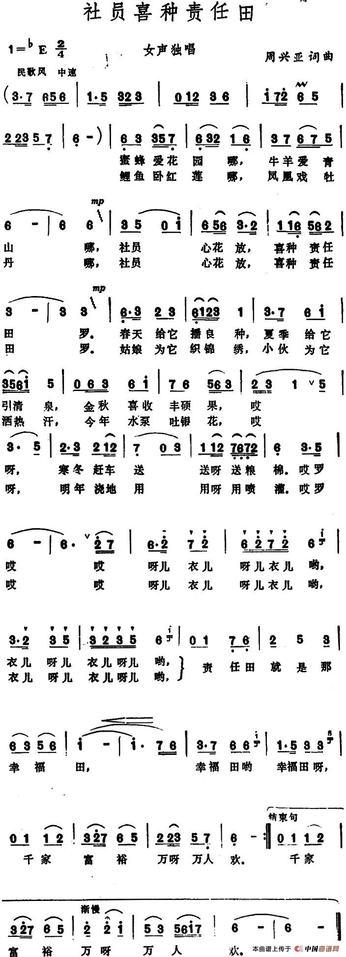 关于《社员喜种责任田 》曲谱的评论