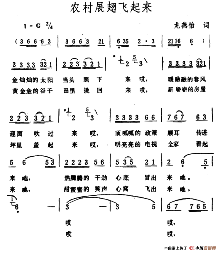 关于《农村展翅飞起来》曲谱的评论